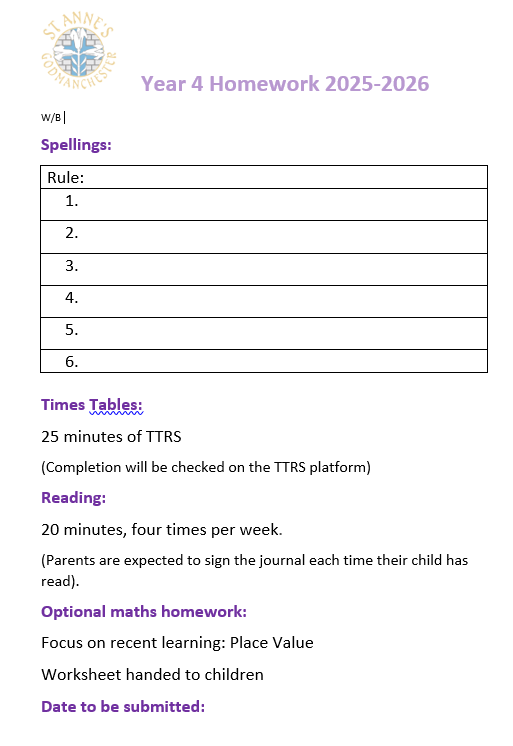 PE days for this term in Class 4 will continue to be Tuesday and Thursday afternoons so please make sure that your child comes into school wearing their PE kits.
